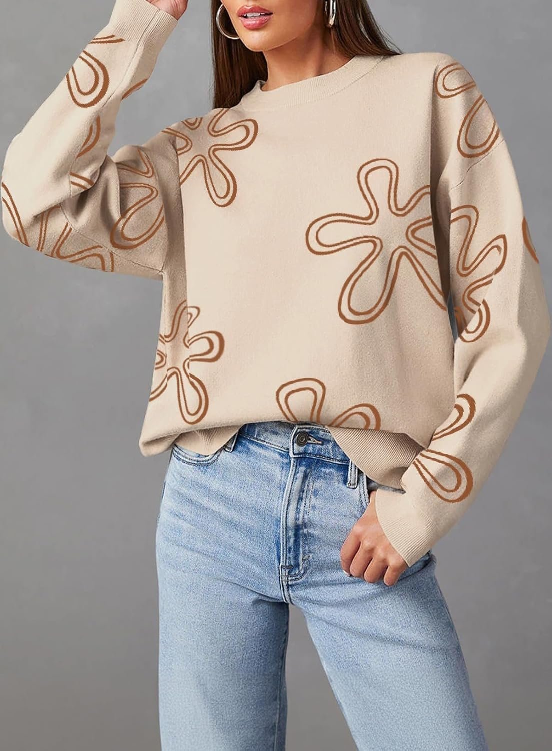 • Match: This stylish sweater tops features full long sleeves and floral print design. It’s very suitable for fall winter and daily wear. Perfect for layering or wearing on its own, and the basic style gives an elegant look. Pair perfectly with variety of shacket, jackets, coats, puffer jackets, jeans, denim shorts, skirts, sneakers or boots for a stylish and trendy look
