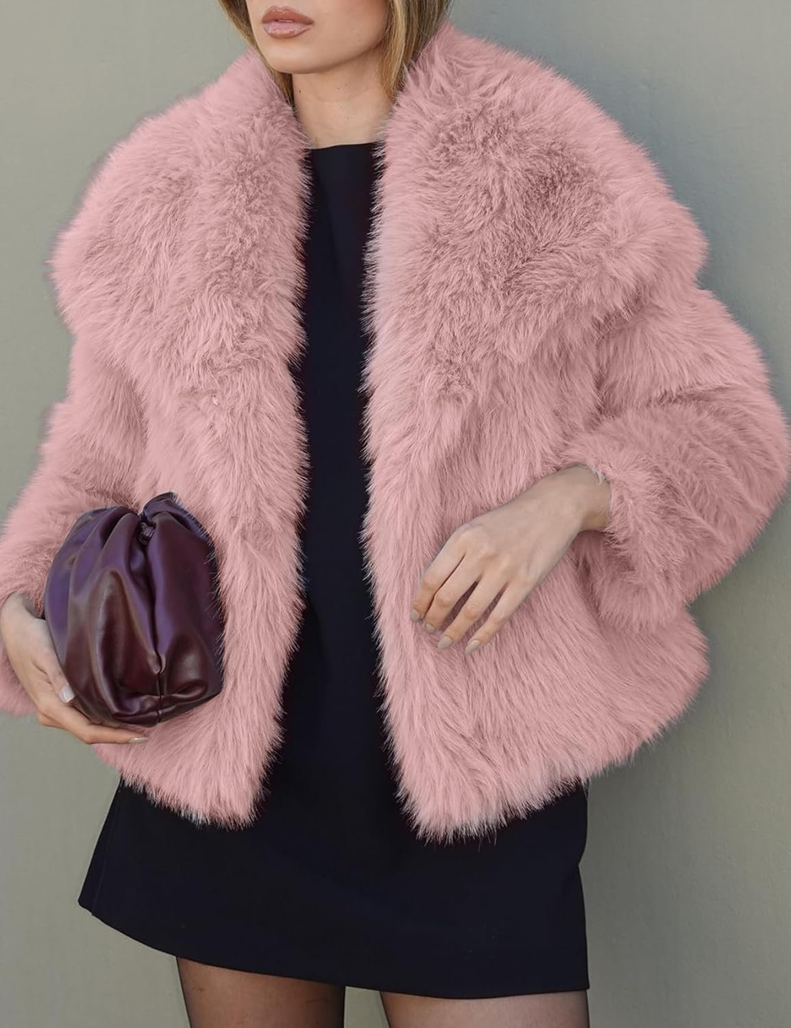 - Features: Shaggy fuzzy coat for women features a glamorous and luxurious look with its fuzzy texture, lapel collar, long sleeves, short length, open front, versatile and chic fluffy overcoat.