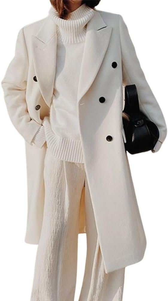 - Midi long wool coat for women, classic and trendy, featuring front double breasted button down placket, long sleeves, basic notched lapel collar, about the knee length, 2 side pockets for your hand.