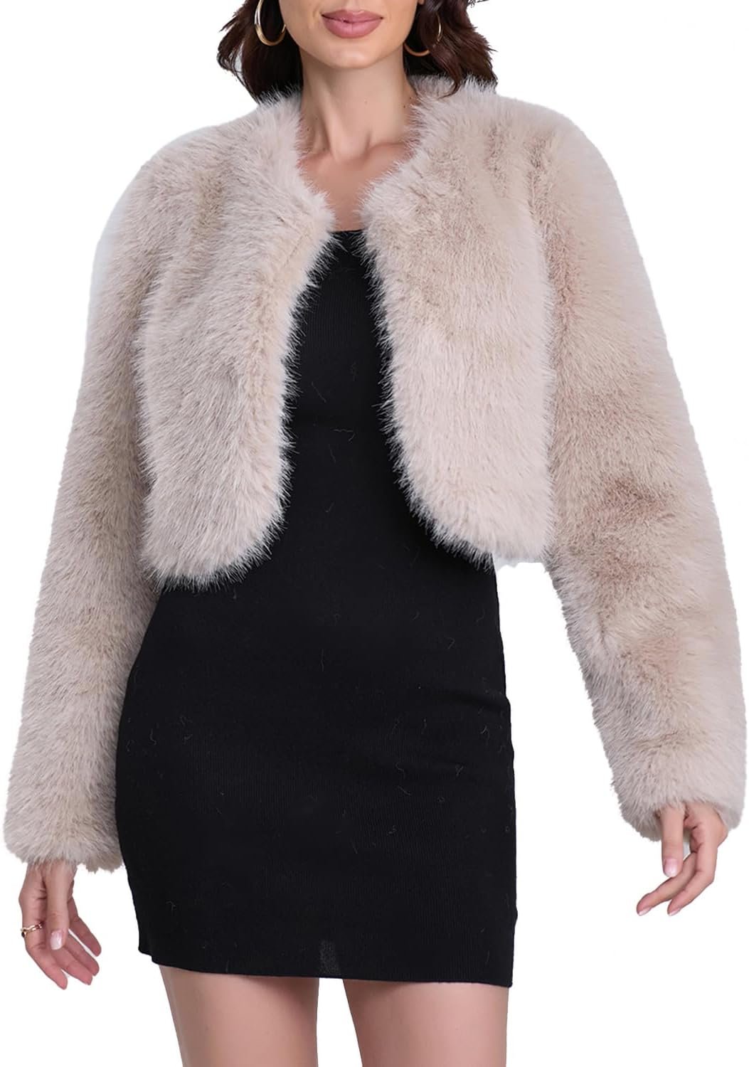 - Highlight: Fuzzy Winter Coats For Women/Open Front Sherpa Jacket Women/ long sleeves/ solid color/ cropped hem, with lining/Collarless/fluffy jacket/Cute clothes for women/Sherpa jacket women