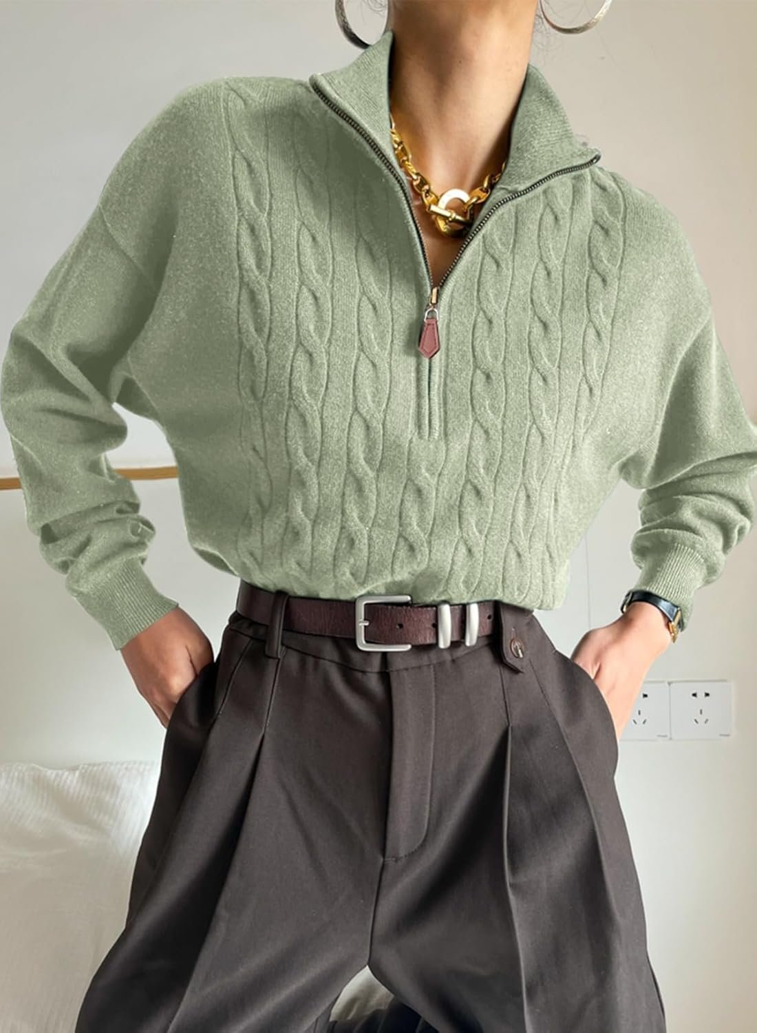 Women’s Sweaters 2026 Fall Winter Quarter Zip Casual Ribbed Knitwear Pullover