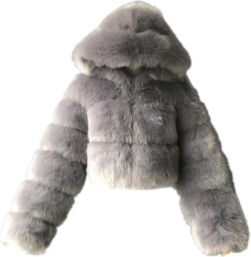 Women’s Winter Parka Coat Long Sleeve Faux Fur Coat with Hooded Warm Short Overcoat Jacket
